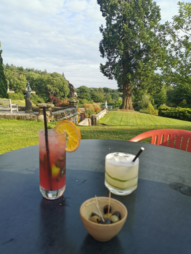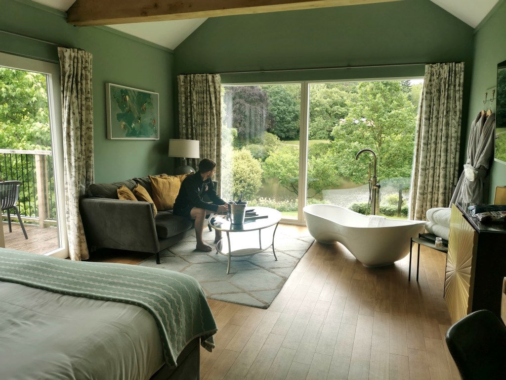 It was about 1pm when we arrived and our room wasn’t ready yet so we went to the restaurant for some lunch. We both had these delicious focaccia sandwiches with chips, looking out over the grounds from the restaurant.