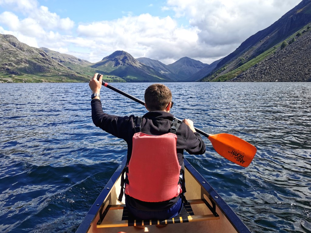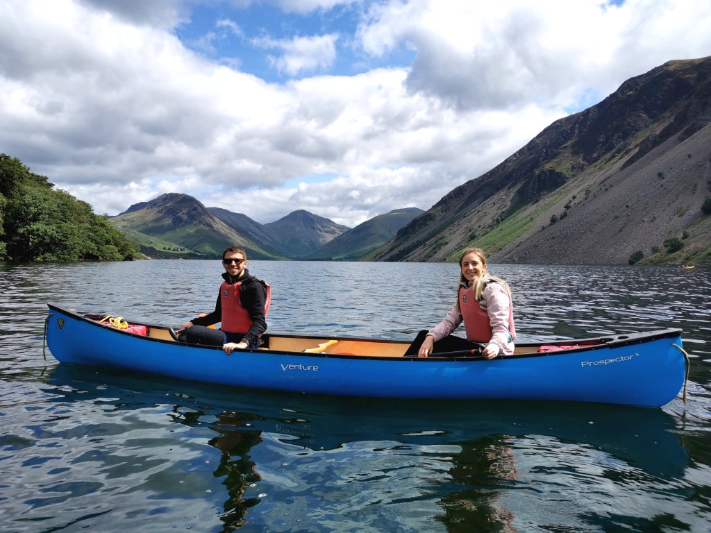 We had set an alarm to wake up early to make the most of the one dry day according to the weather forcast. We got on the road to head to the west of the lake district, Wast water, for a morning canoeing tour that we had booked. The drive there was about 1h15 and was very picturesque – thr definition of rolling hills.