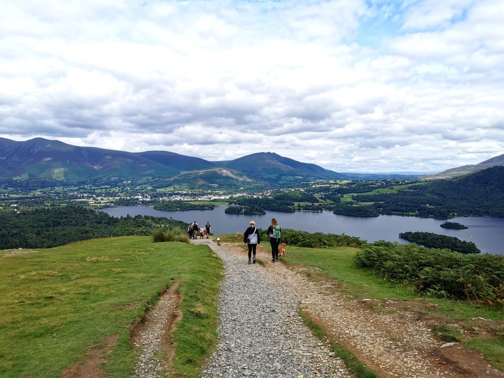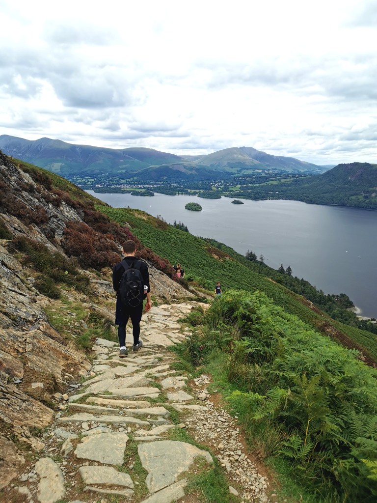 After lunch, we drove back the way we came towards Keswick but on the other side of the lake to hike Cat bells mountain, one of the easier but most popular hikes (height – 451m elevation).