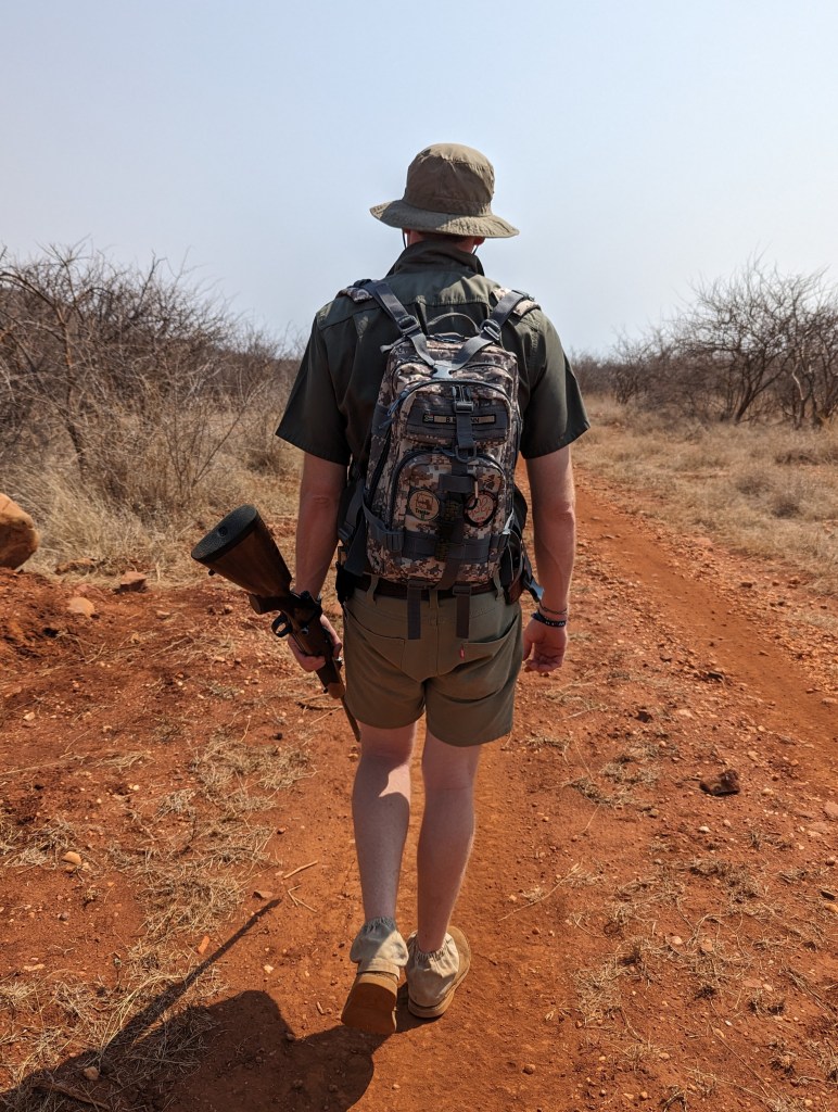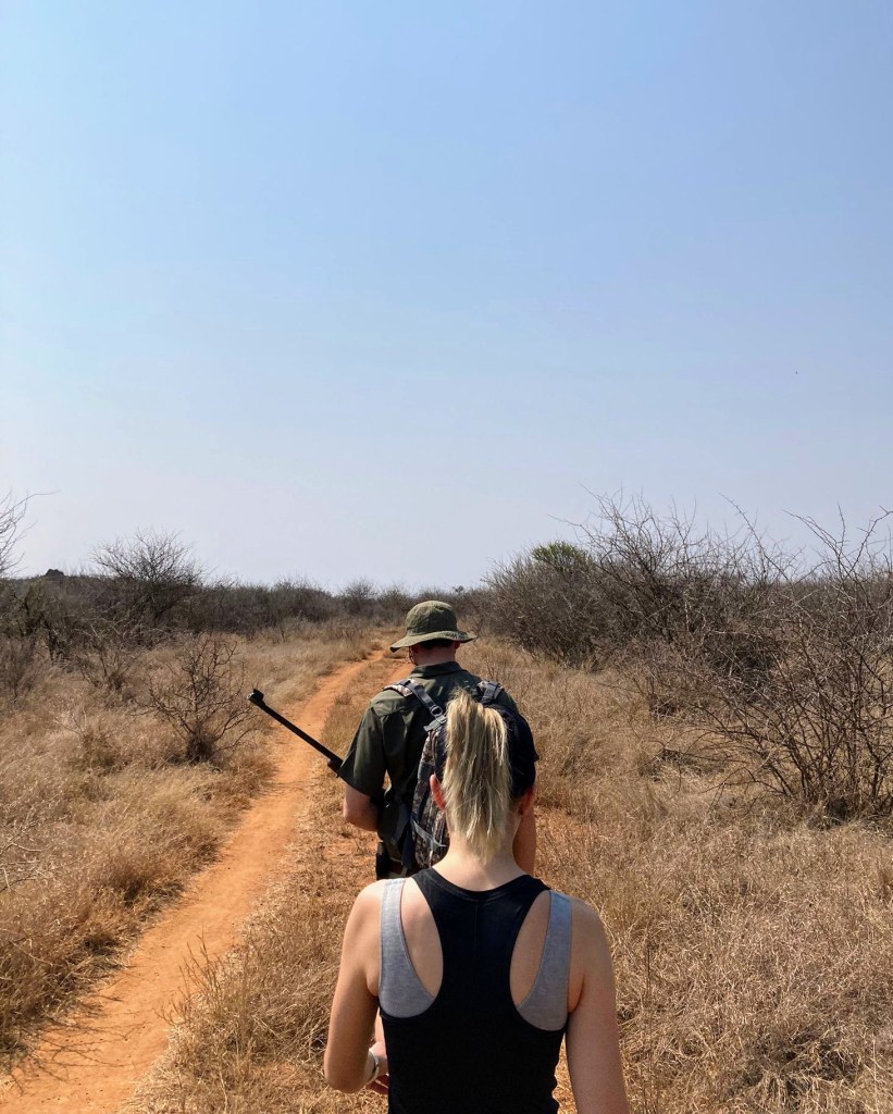 We had a quick breakfast as it wasn’t long before we were meeting Brian again for a bush walk that we had arranged with him. This involved going on roughly a one hour walk around the reserve close to the lodge. Brian loaded his gun and we headed out. Before we left he told us ‘If you see an animal, when we were in the truck, the rule was no standing up, now the rule is no running!) We felt very safe with Brian though – he knows his stuff for sure!