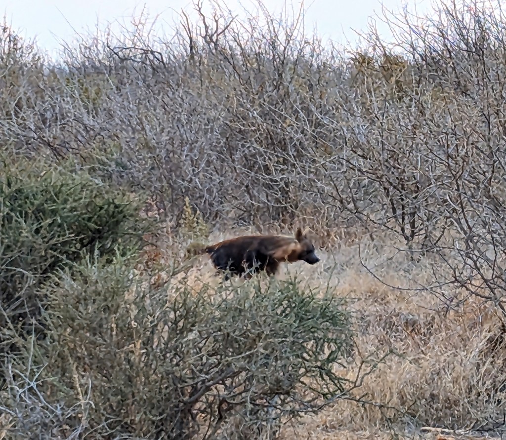 On the drive we saw a few new species: Crested Franklin, Brown hyena and the Southern booboo. Hyenas are hard to catch on camera as they quickly run off, but I did my best…