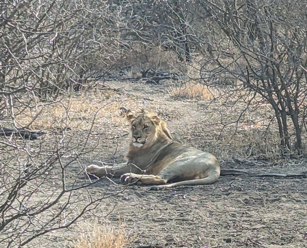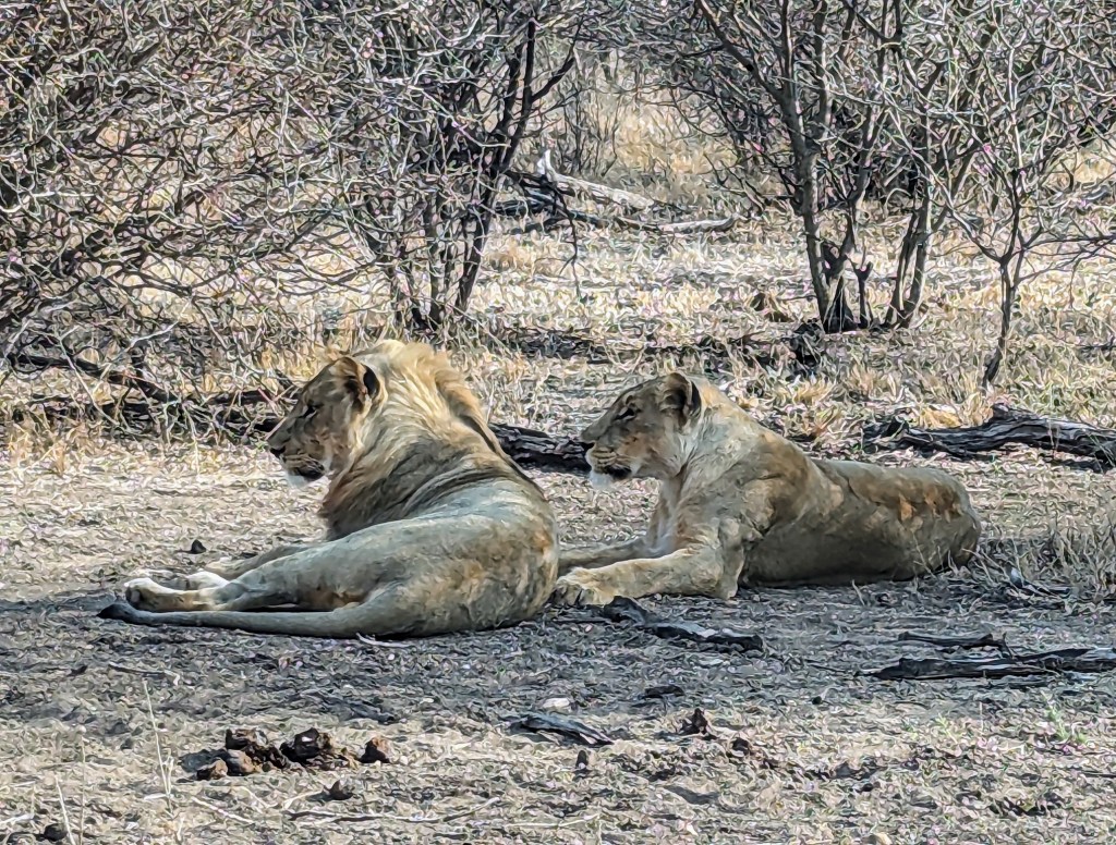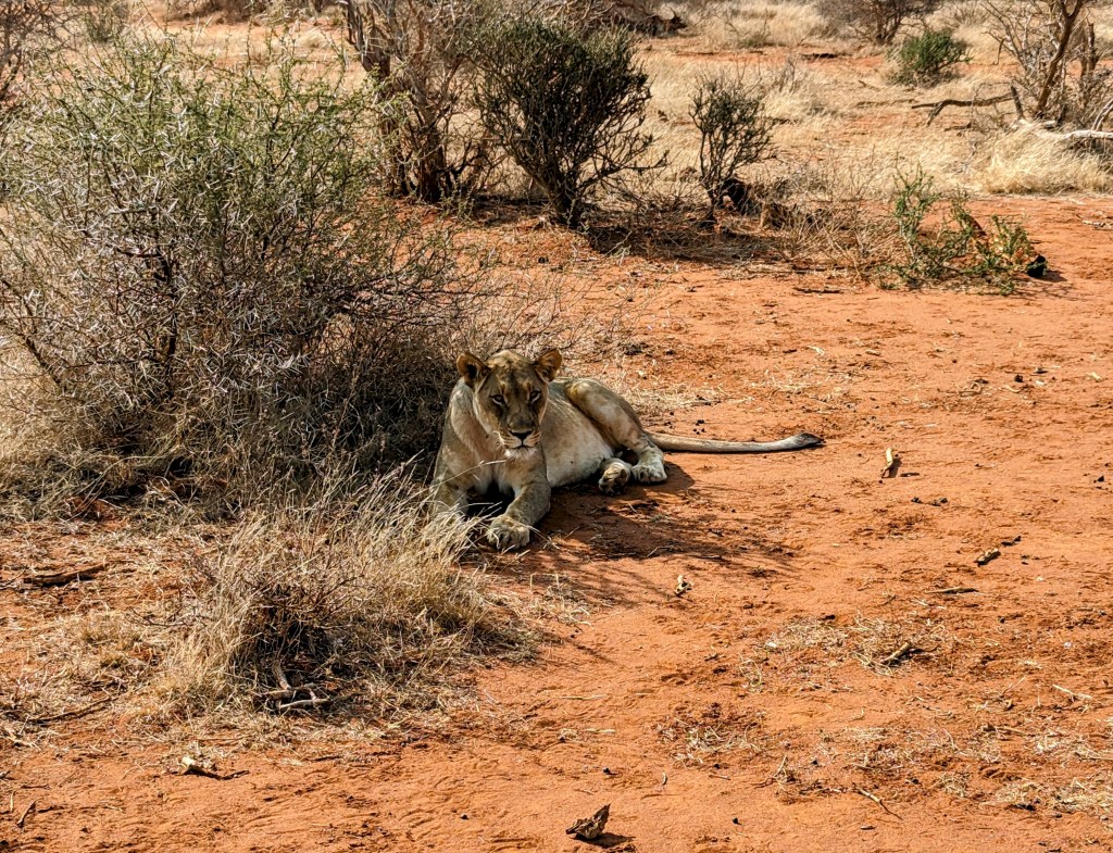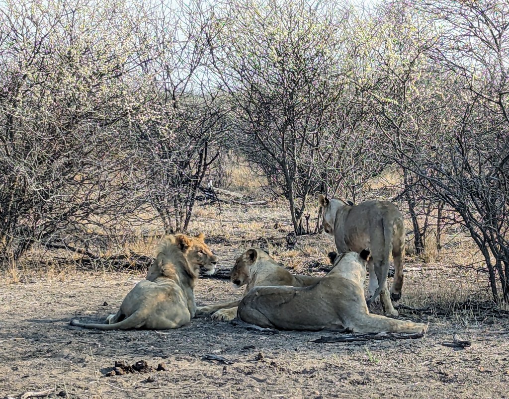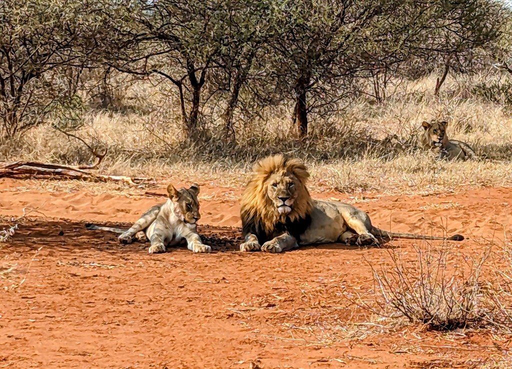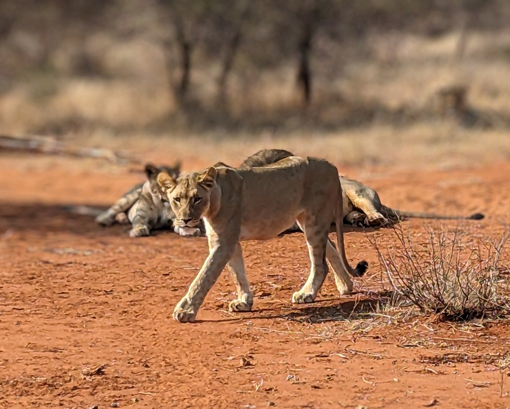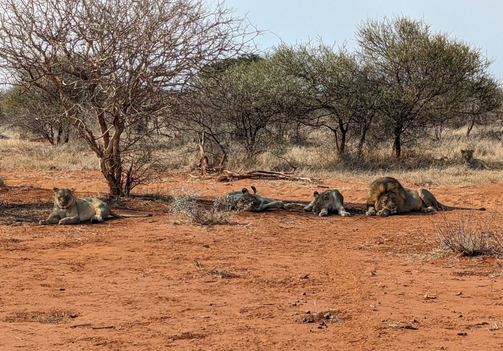 We had seen so much and were late for breakfast so Brian said we were going to head straight back now rather than stop for a coffee. Just as we started to drive back we came across 5 MORE lion! An adult male (the brother of the other one) and adult female and 3 younger ones. We were so close to them – probably 5 metres from the closest. I must say it was a little nerve wracking when they looked straight at you! But they didn’t seem phased.