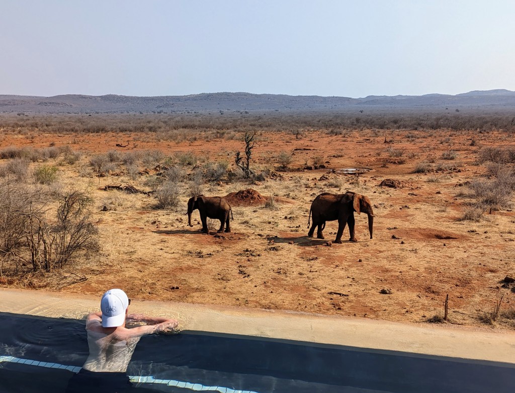 When we got back we had a lovely breakfast and then went and packed our bags. We were so sad to be leaving! We wrote letters for Brian, Charlie and the staff at Madikwe to say thank you and said our good-byes to everyone – even the elephants came to the water hole to say goodbye!