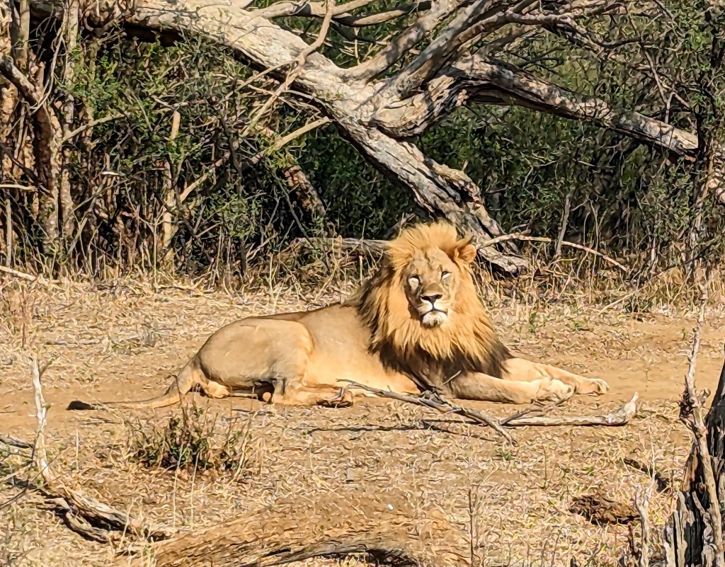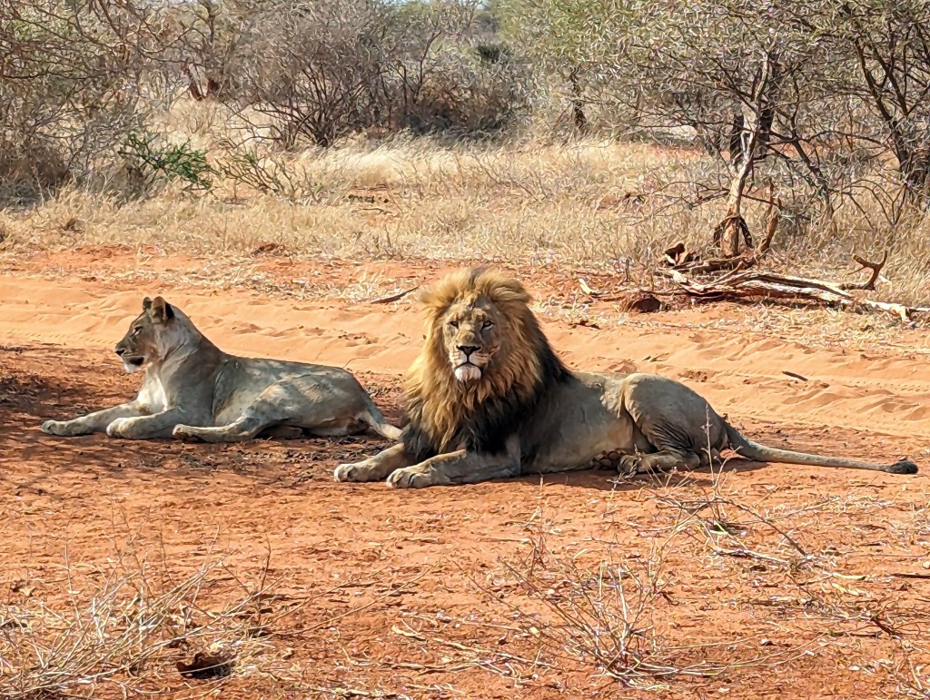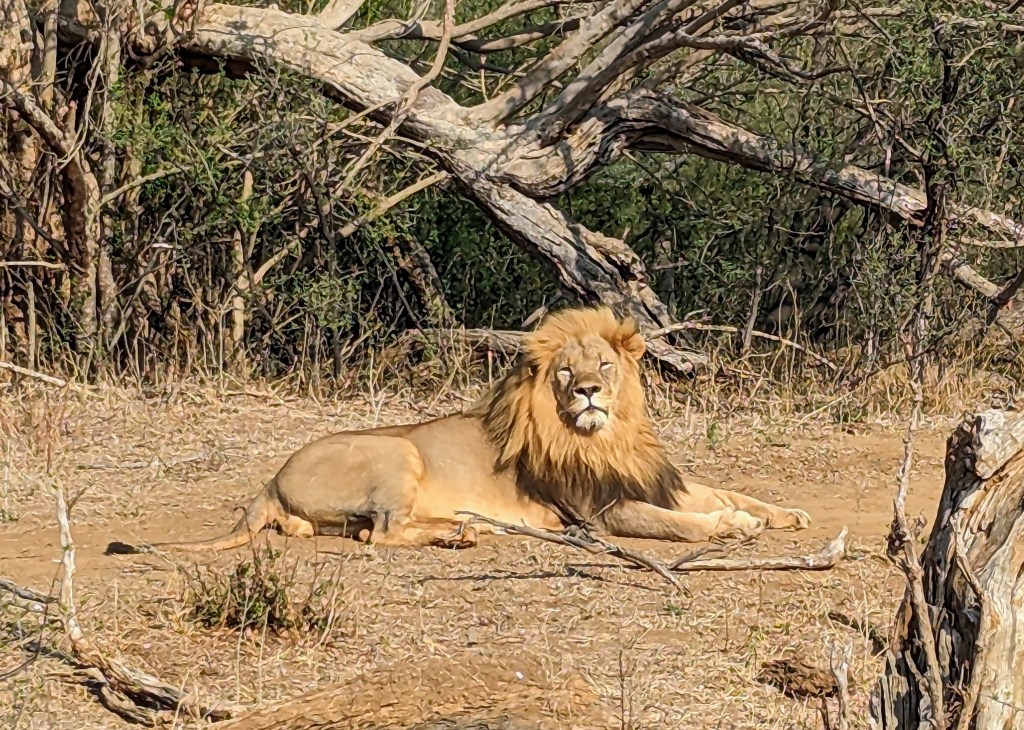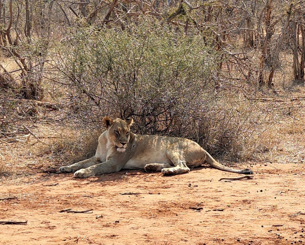 Later on in the drive Charlie and Brian were told through their radio that there had been sighting of an adult male lion – we had been wanting to see one with a big mane! So we drove over to the location that it had been seen at which was at a river (that contains a two and a half metre croc in it!), but unfortunately just missed the lion as it had wandered over the border onto some neighbouring local private land.