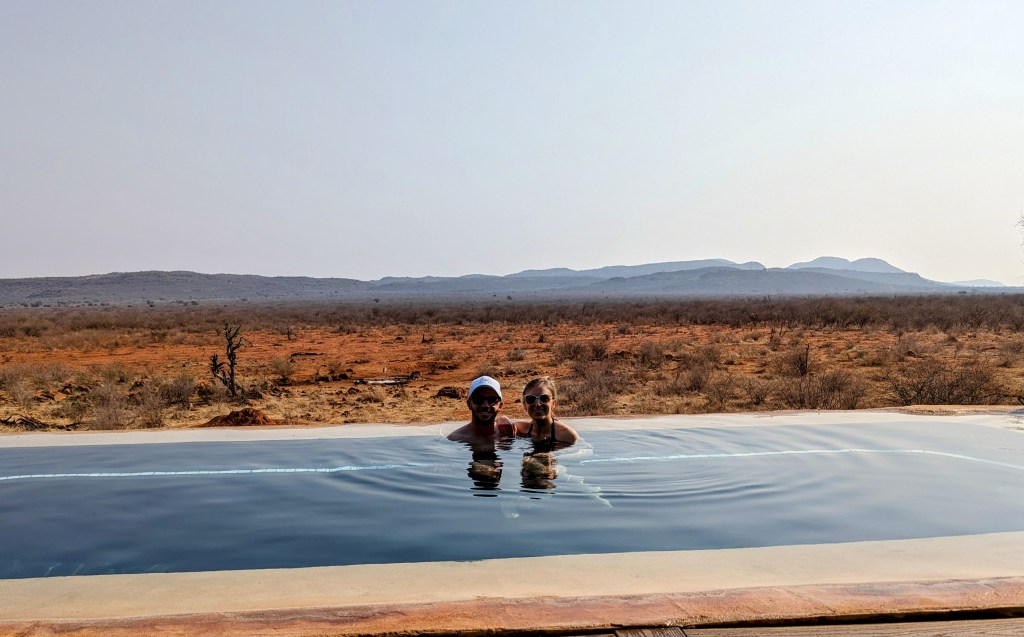 They then got everyone up to dance with them – it was good fun! We then took a seat at the tables in our Safari drive groups with Charlie and Brian and helped ourselves to a buffet of local foods cooked by the chefs. It was all delicious! Harry tried various meats and I tried a fish and local salads. We also tried pap, one of their common dishes, which was great! The dessert was called Malva pudding and tasted like sticky toffee pudding – it was so good! We loved experiencing a bit of the culture that evening.
