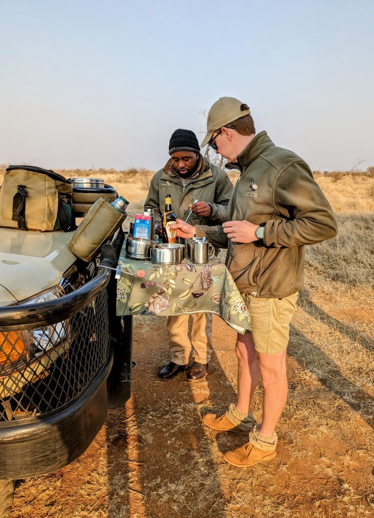Our checkout time wasn’t until 11:30am, so we still got to go on the morning game drive. So we got ready and met for the drive. It was chilly this morning!