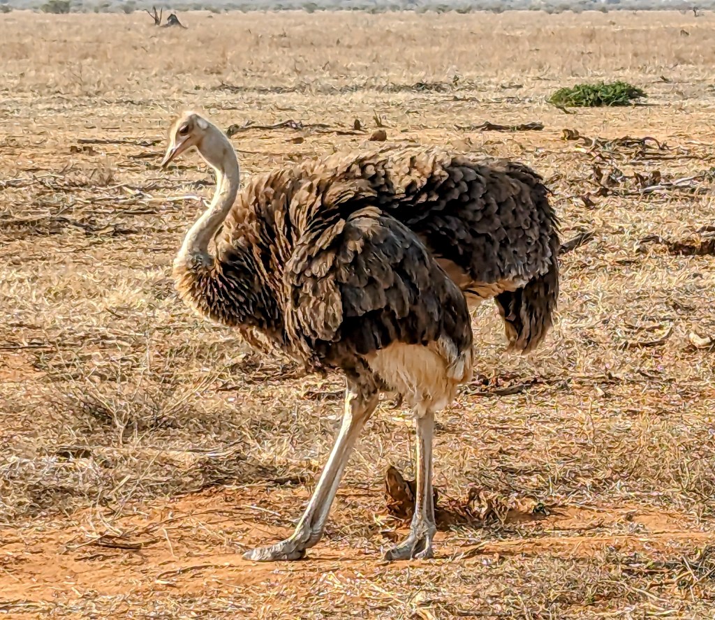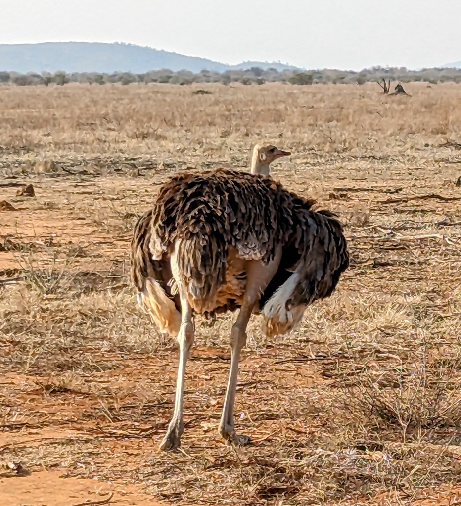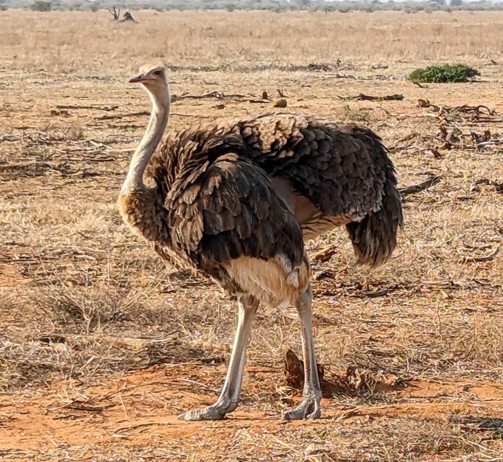 On our way back to the lodge we saw a male Ostrich in the distance (black in colour) and a female Ostrich up close (brown in colour). They’re so big!