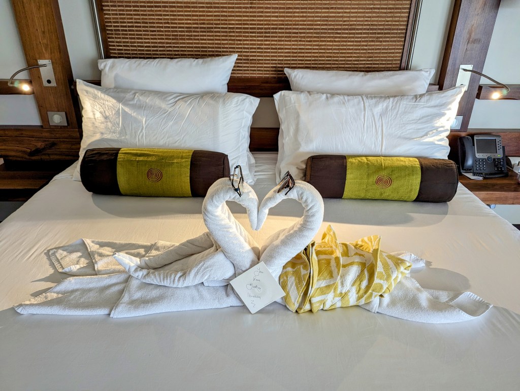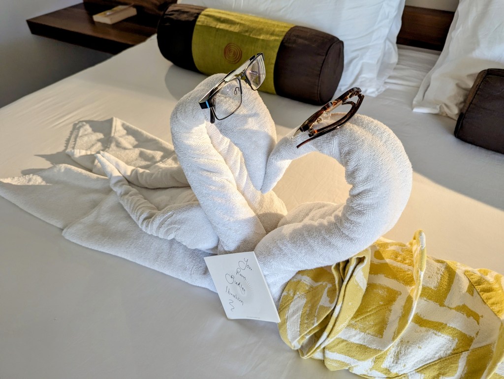 When we went back to our room, we found a funny surprise that had been left on our bed for us!