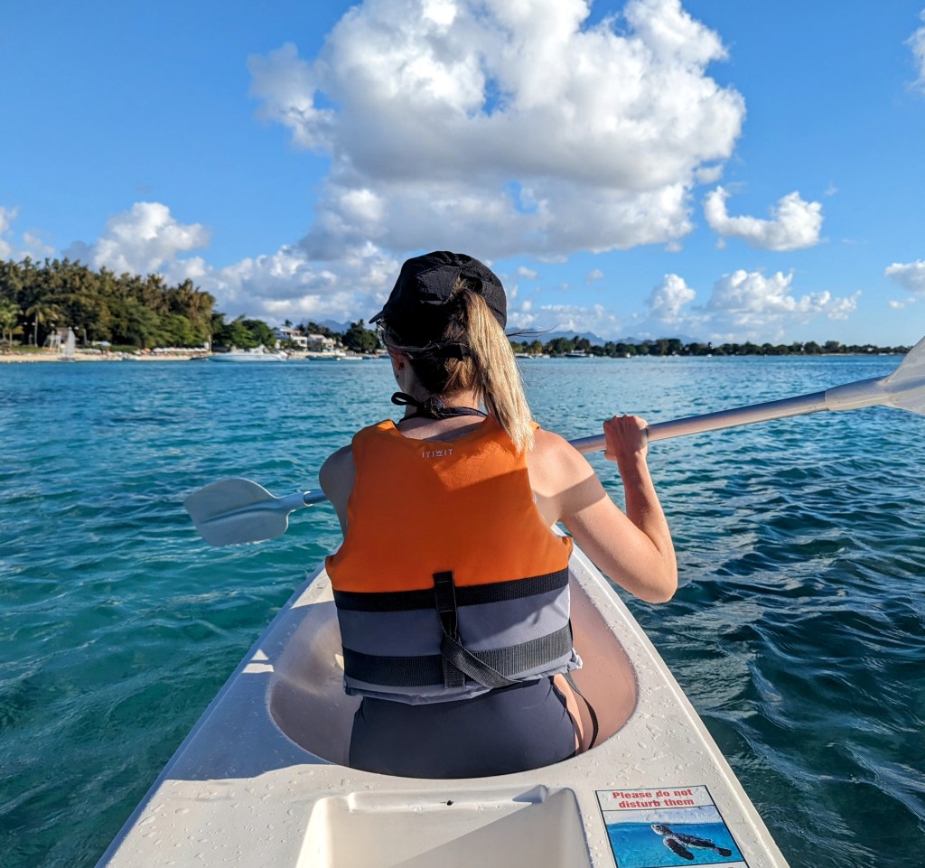 After lunch we hired a kayak to go out on the sea. It was very pretty, the sea shimmering in the sun and the water was so clear we could look out for any wildlife down below us.