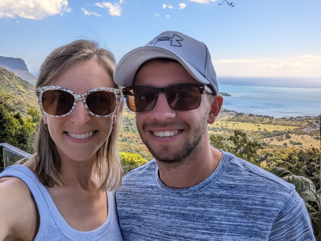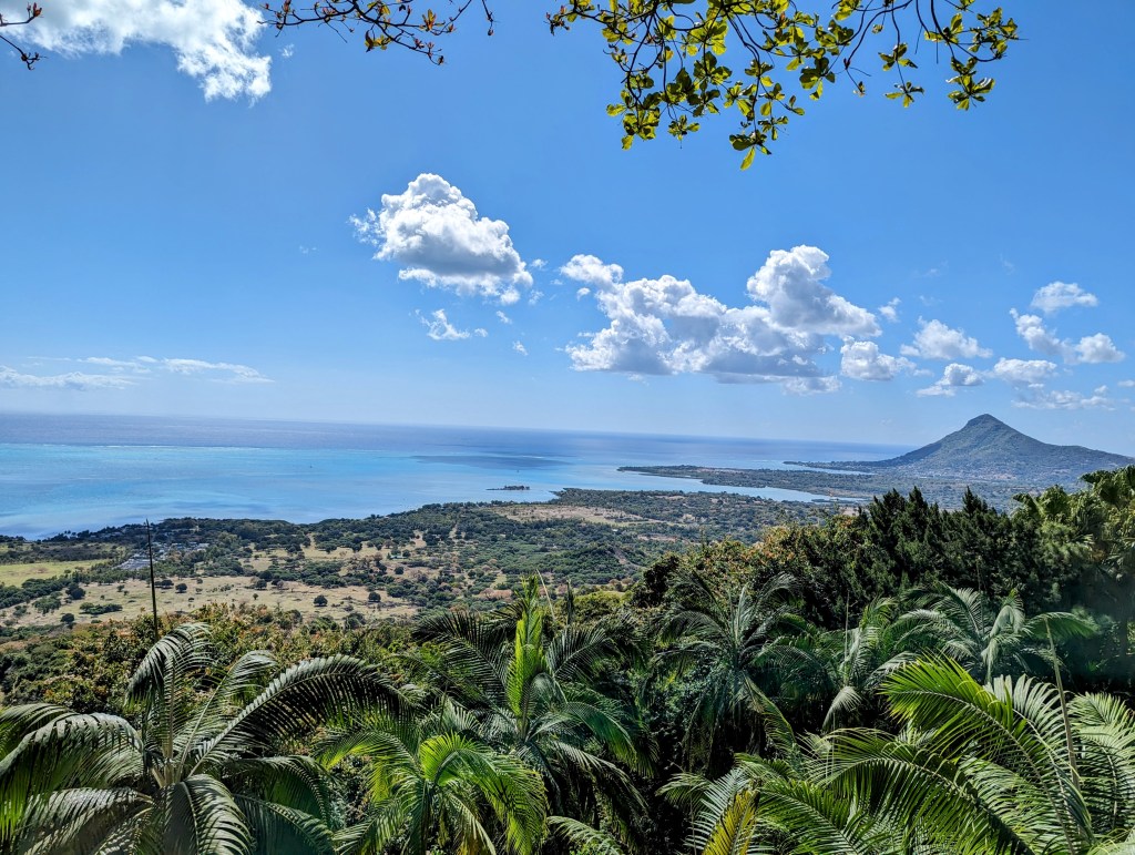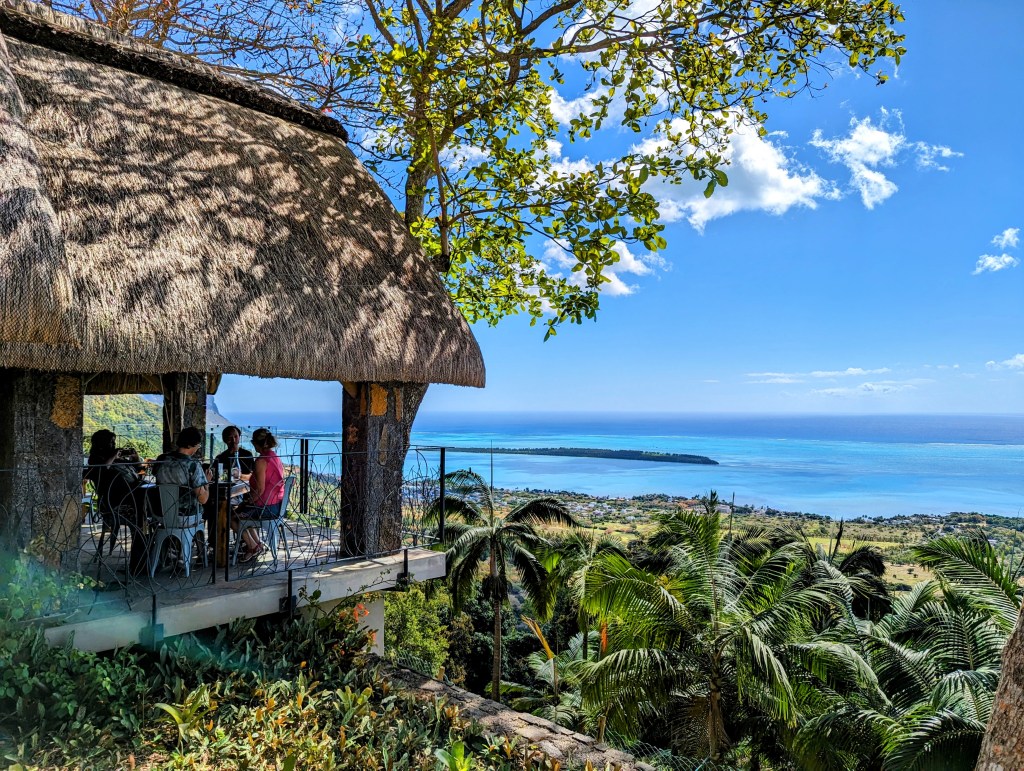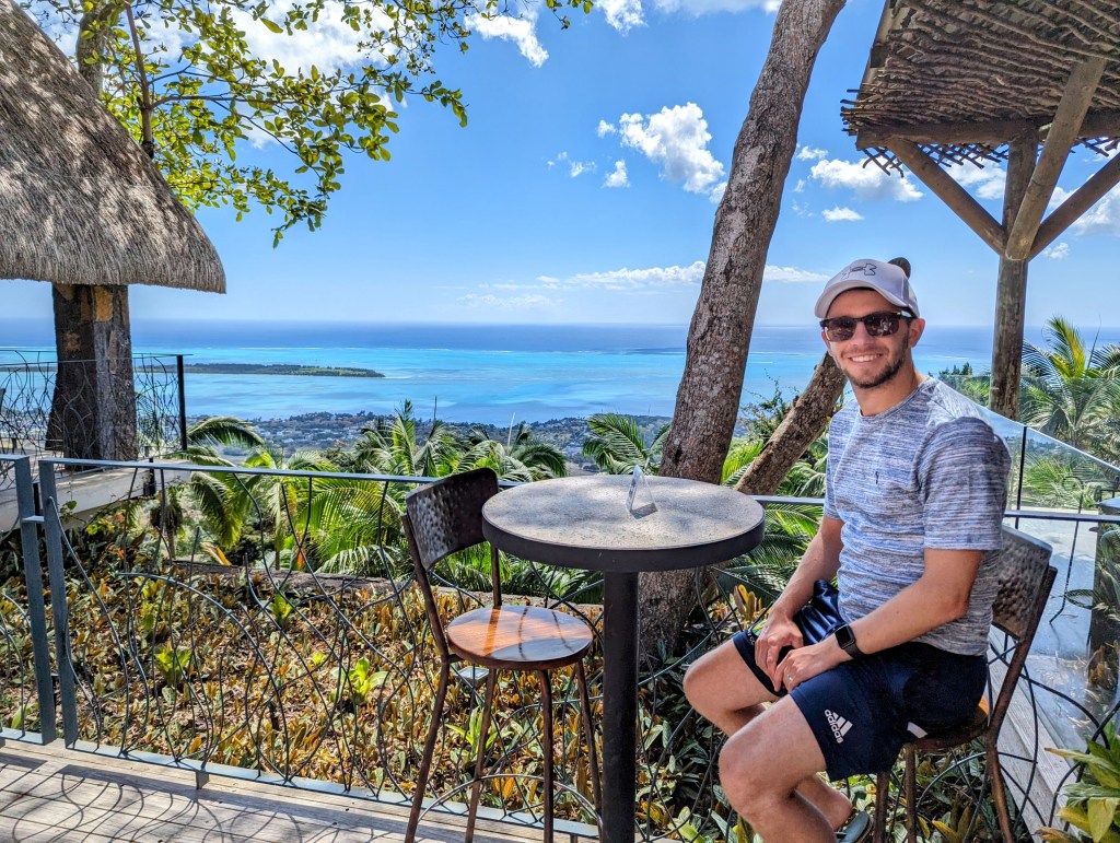 We then got ready for the morning, had some breakfast and packed our bags to leave the hotel as we were travelling to our final hotel of our honeymoon. We got on the road in our car and headed South, travelling along the west coast. We were heading for Chamarel viewpoint that we had researched before the drive (and was on our way to our hotel) but firstly, about an hour and a half into the drive, we came across a restaurant called Le Chamarel (that called itself a restaurant with a view). It really was! We just stopped and had a drink and took some photos.