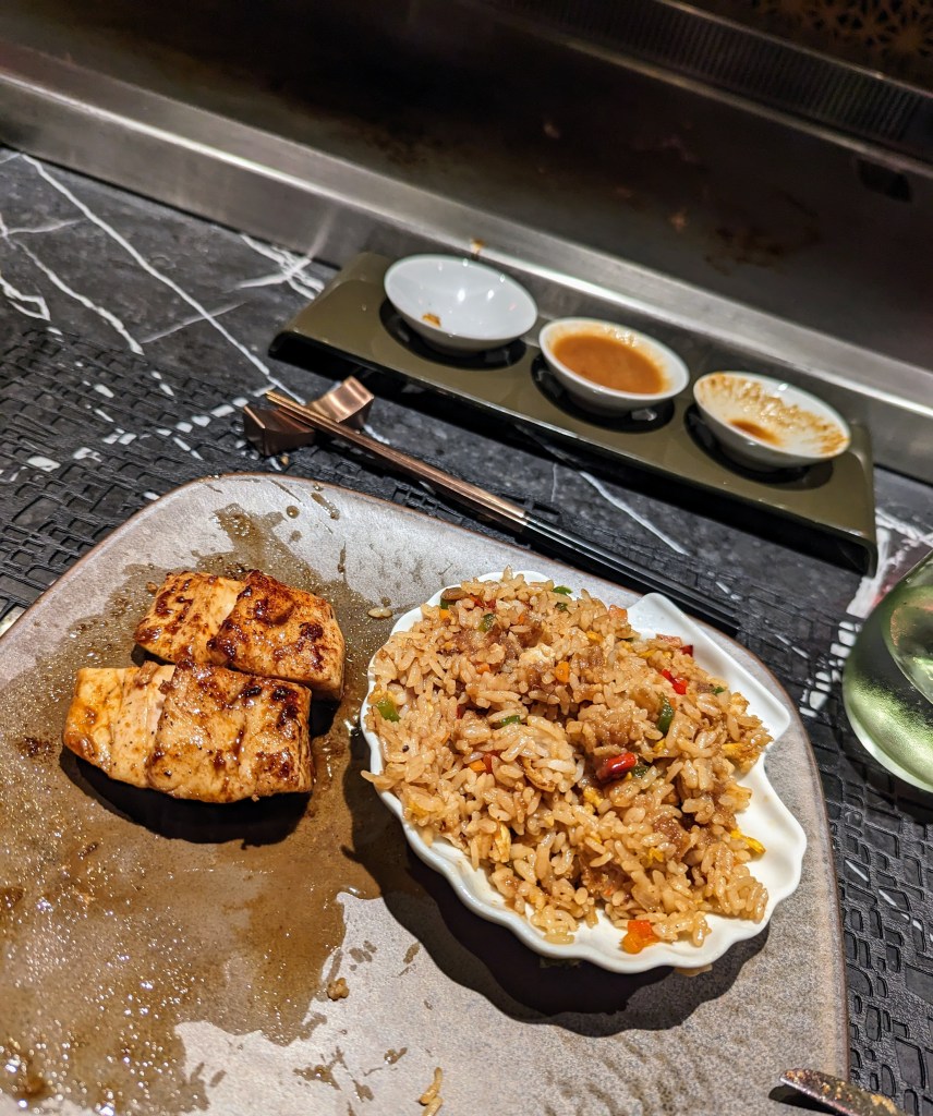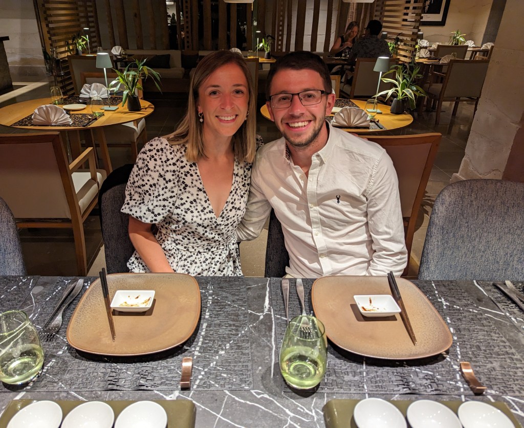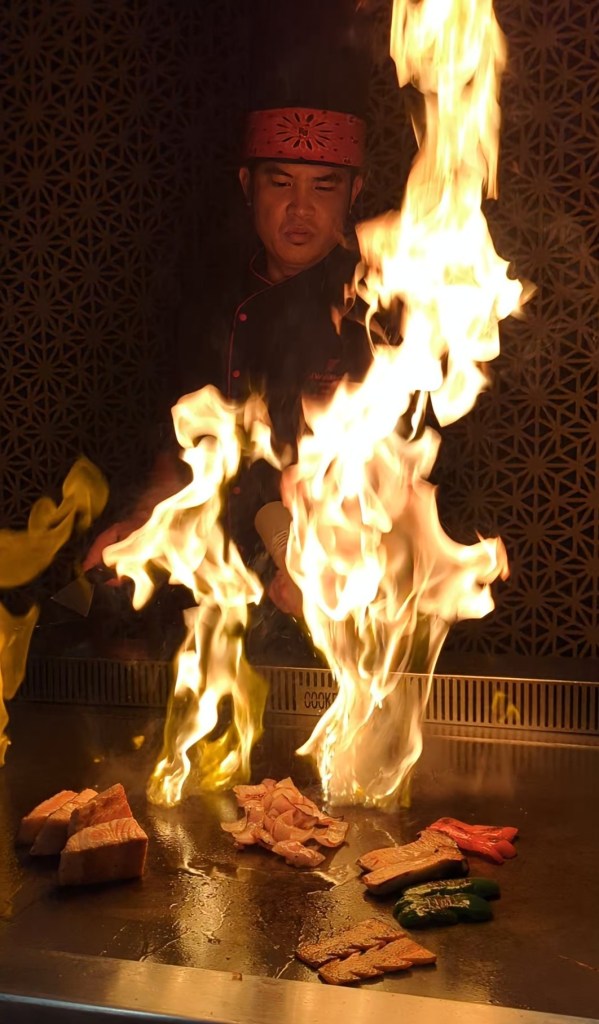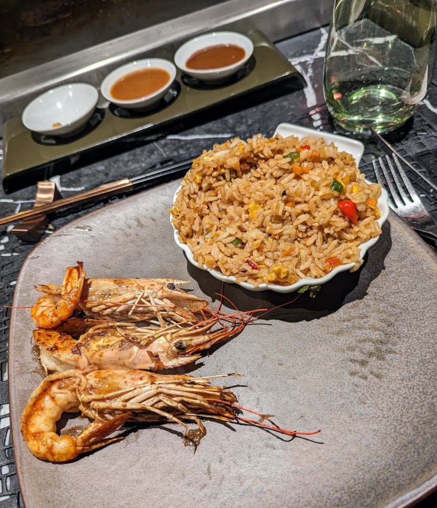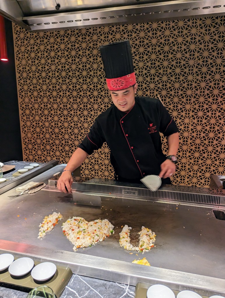 That evening we had a special dinner booked as Harry’s last 30th prezzie/2 months wedding anniversary celebration. Front row seats for a live teppanyanki dinner at one of the restaurants – it was brilliant!
