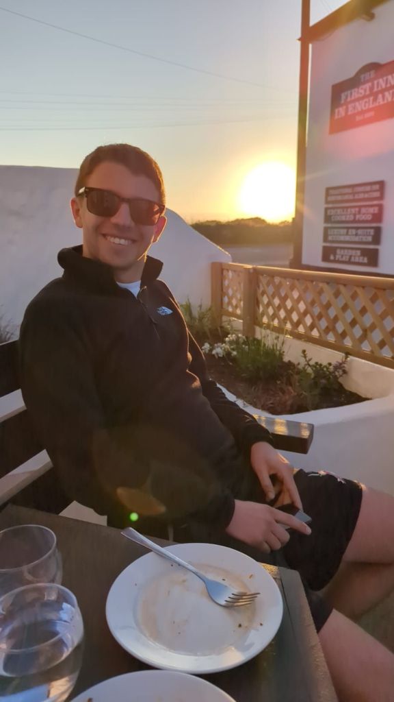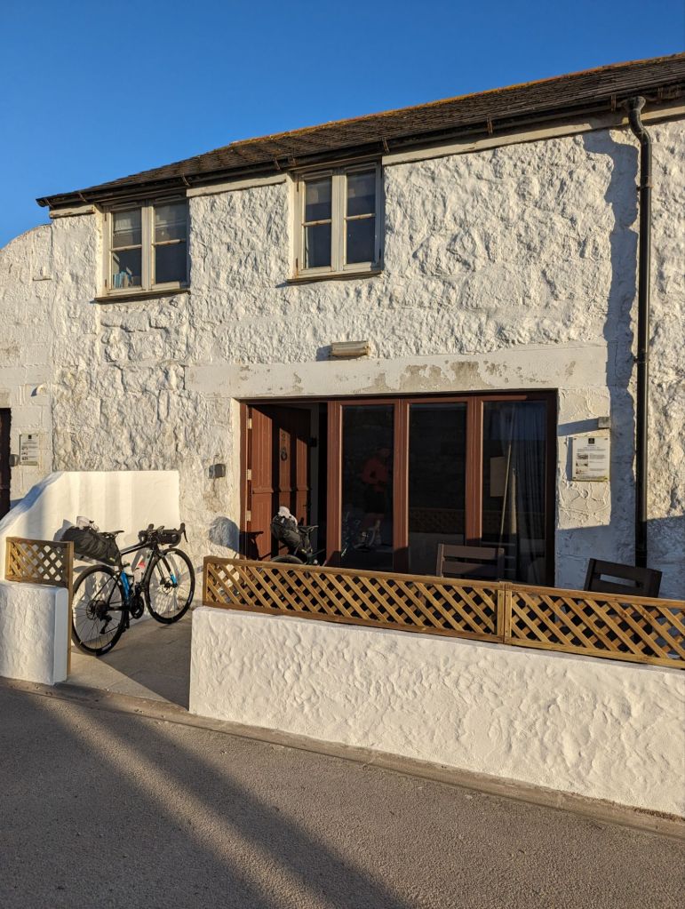 We left the station and started our 20km cycle to our accommodation in Sennen. We were surprised with an absolute beast of a hill within 3km of the station before our legs had warmed up at all. But the rest of the ride was lovely, with the sun out and setting and beautiful views. The bikes are definitely feeling heavier than we’re used to with all our stuff on them!