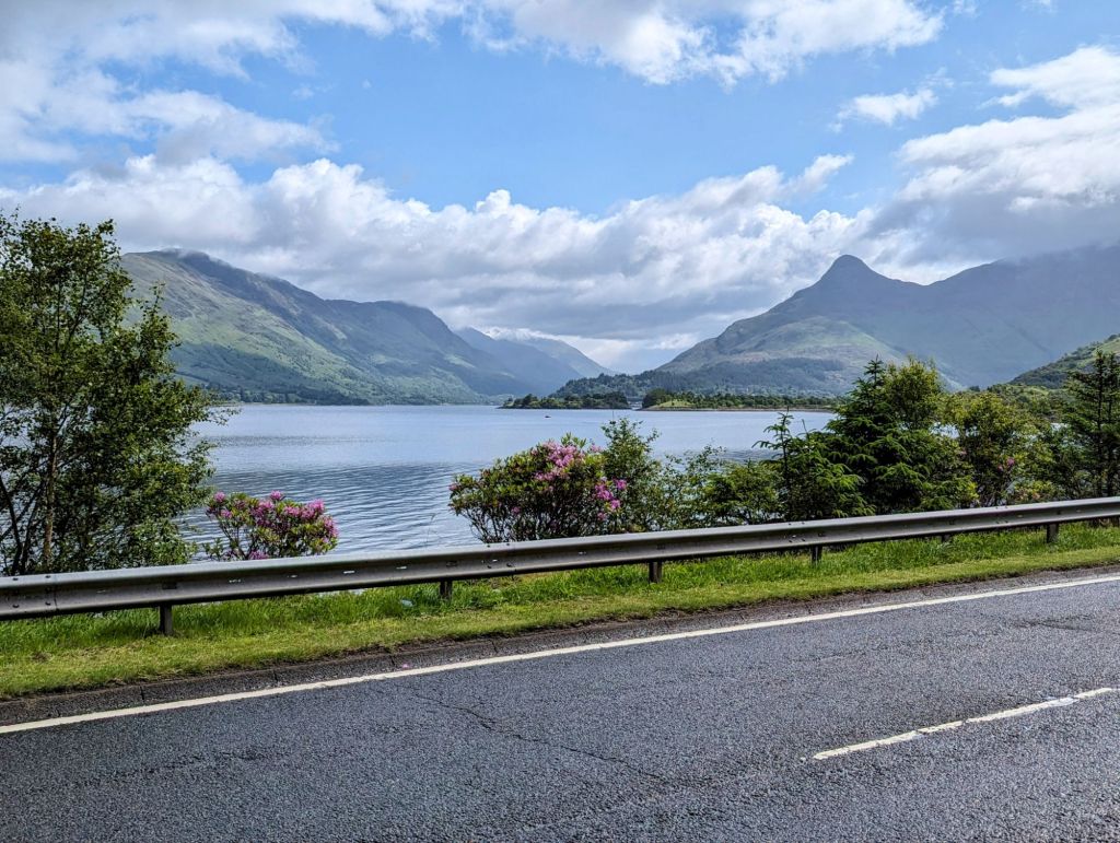 We then had our next big decision. To go up ‘the wall’ (the largest climb of the trip) or to go down the flatter, more direct but significantly busier A82. We knew we had a small gap in the weather and decided to take the tougher route with the hope of some reward at the top… and WOW did it deliver. It was about a 400m climb over 7ishk and the views at the top were breathtaking.