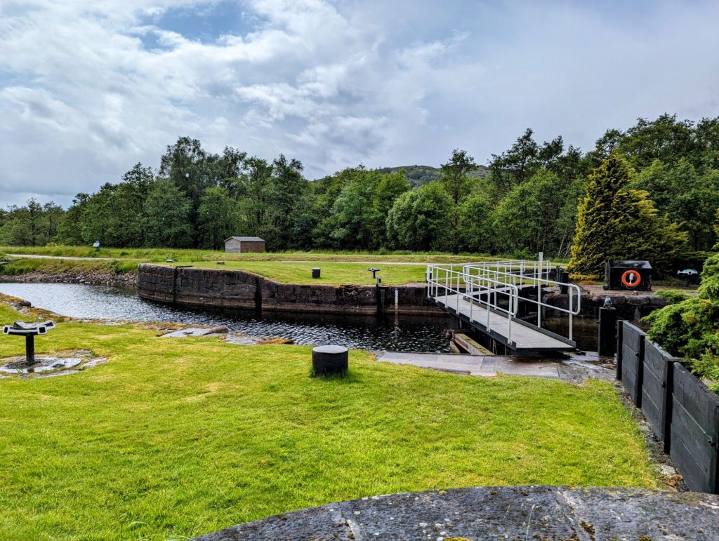 We continued this good fortune all the way (with the odd minor soaking) to Fort Augustus, which was 80k into the ride and significantly further than we thought we’d make it today. The last 10 or so kilometres was on the Caledonian Canal Path, and the sun finally came out.