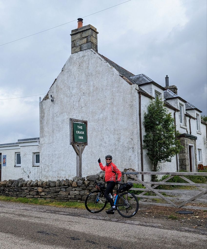 At the top of the climb was the well known Crask Inn to LEJOGers, who often stay there because of there basically being no other option around! We had heard from other LEJOGers that it’s owned by a Scottish priest who lives there with his 3 wives(!!!) and if you stay there you sit round the dinner table and have dinner with him and his three wives all together. It was a no from us.