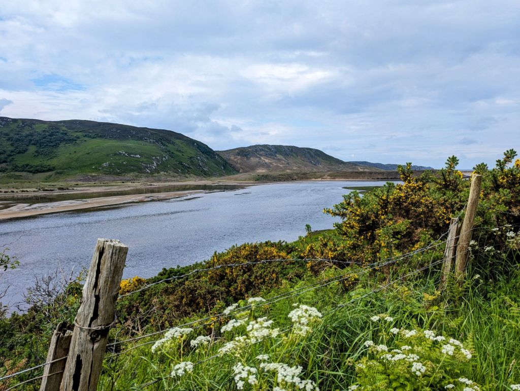 We woke up to our 7am alarm in the cosy cabin in Lairg after one of the best nights sleep we had had most of the trip! We got up, had brekky and got ready for an early leave with 120km ahead of us to cycle. We headed out just after 8am (Beth now with two strapped up legs to get her through the last 1.5 days looking more and more like a patchwork quilt as the days go on).