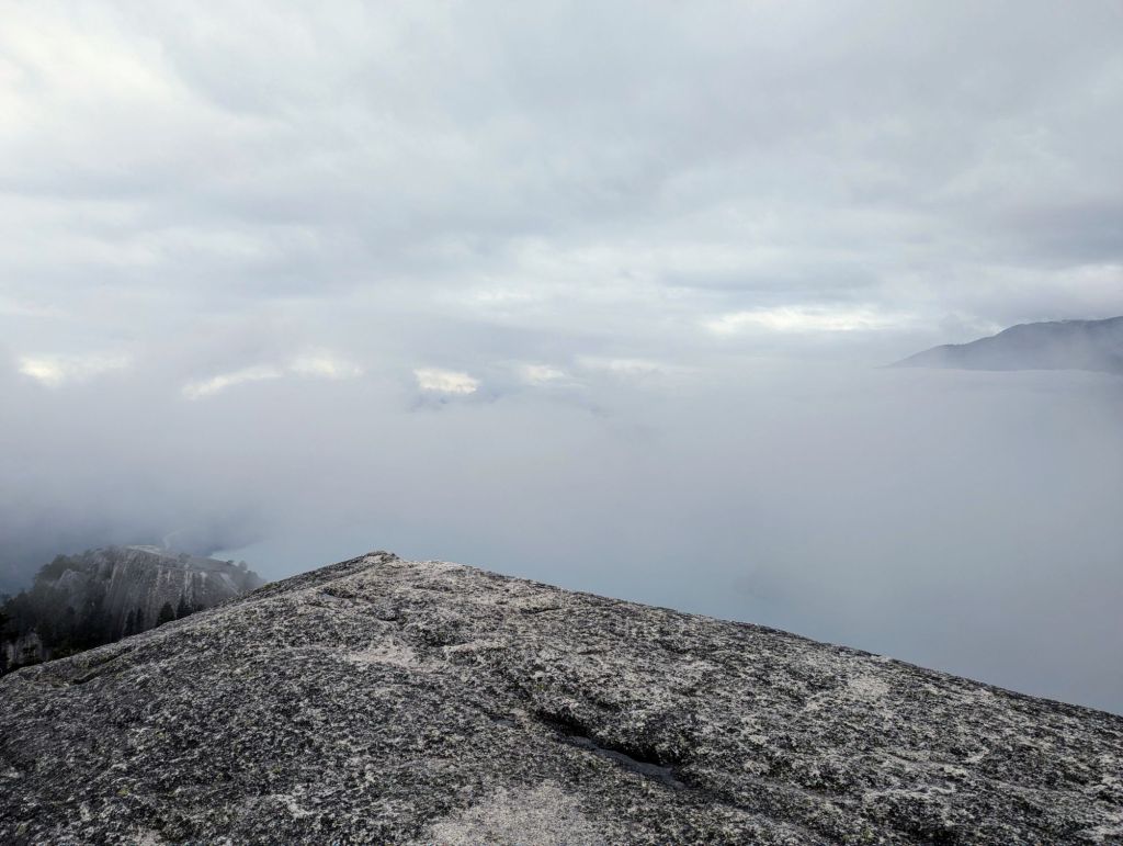 We waited at the top for a bit to see if the cloud cleared. It did a little…