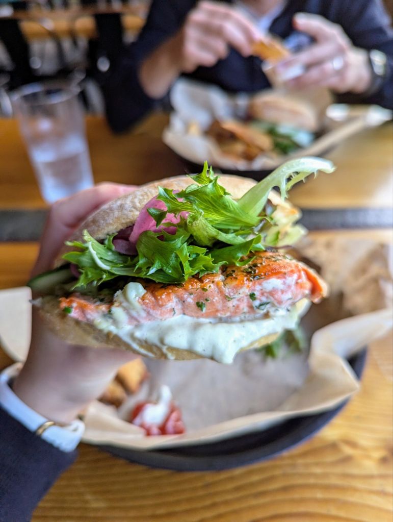 Having built up an appetite again (even after that big brunch), we then drove down the road to Locavore Bar & Grill. We had done some research online for a good place for a Canadian Sockeye Salmon burger and this was a recommended place so we had high hopes. And oh wow did it live up to them and more! The colour of the salmon was almost pinky red and it tasted so fresh – absolutely delicious and well earned!