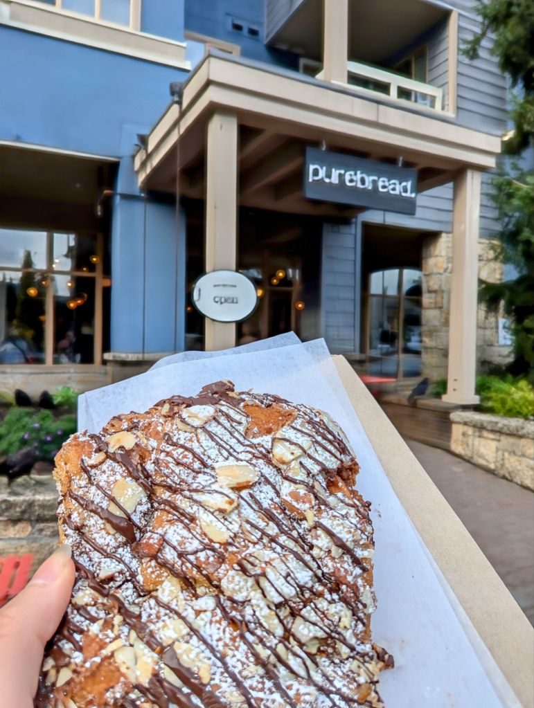 We walked past a bakery called ‘Purebread’, which one of our new Canadian friends from yesterday had recommended, so we decided to get a pastry to share. We got a chocolate almond croissant, which was delicious!