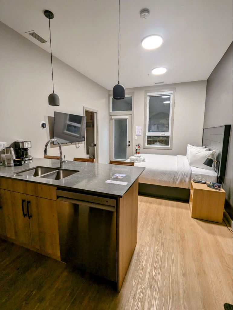 We continued on our journey sharing the driving and eventually arrived in Revelstoke. We found a supermarket where we picked up some bits to cook for dinner and then checked into our Airbnb for the night (a little studio).