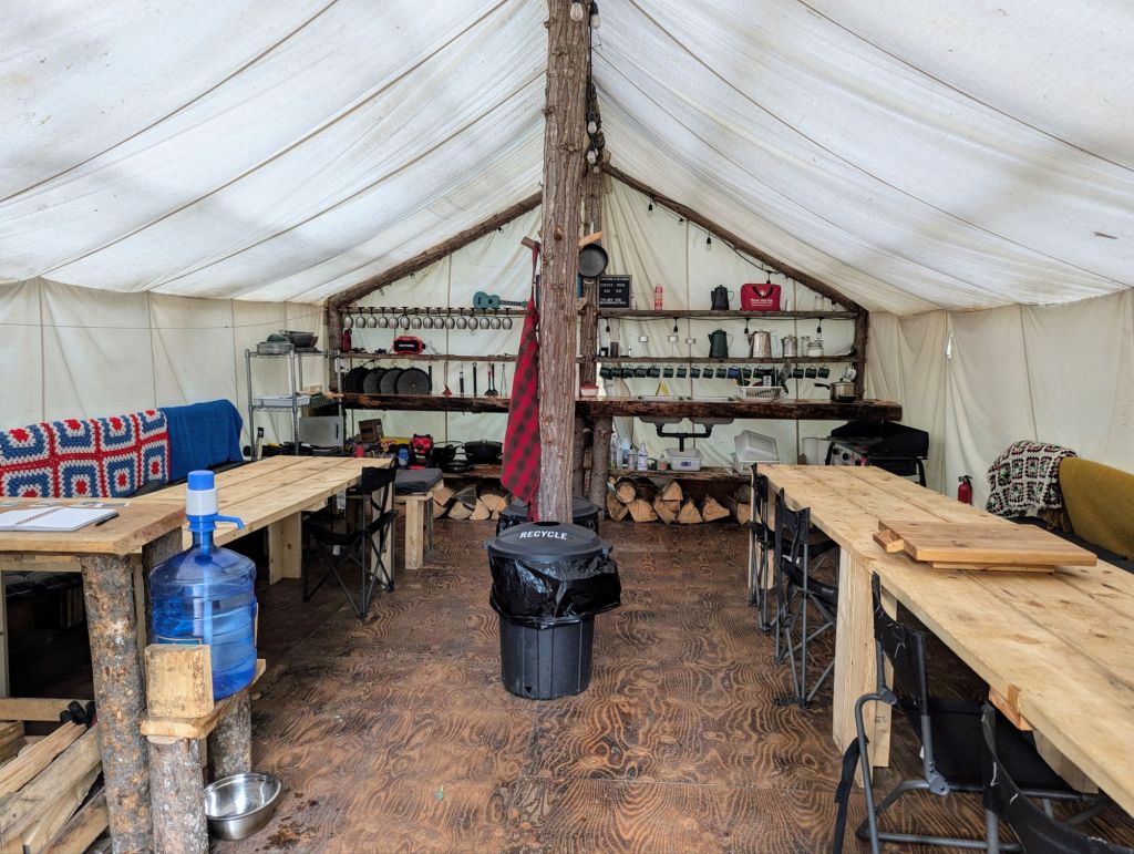 Tonight we were going to be doing a camping (more like glamping) in the woods experience near Golden, so we got in the car (with the heater on full blast) and drove to Camp Moose Trail. When we arrived, Michael (the host) and his dog Winston greeted us and showed us around the camp site.