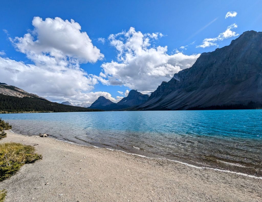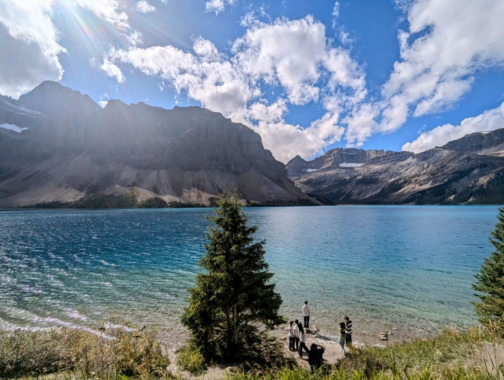 We pulled over at Bow Lake viewpoint where we saw the lovely bow lake but also our first glacier – Crowfoot glacier, which was pretty incredible!