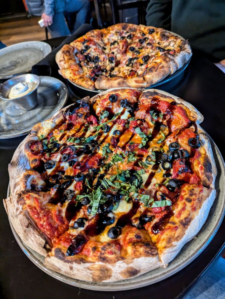 There wasn’t much choice of restaurants in Lake Louise and the one we had our eye on was closing early because it was a Sunday. So we ended up at Timberwolf Pizza and Pasta cafe where we both had a pizza for dinner.