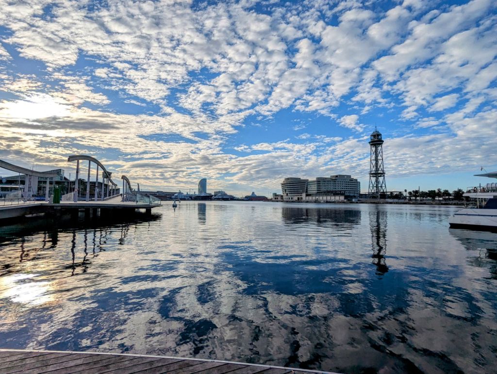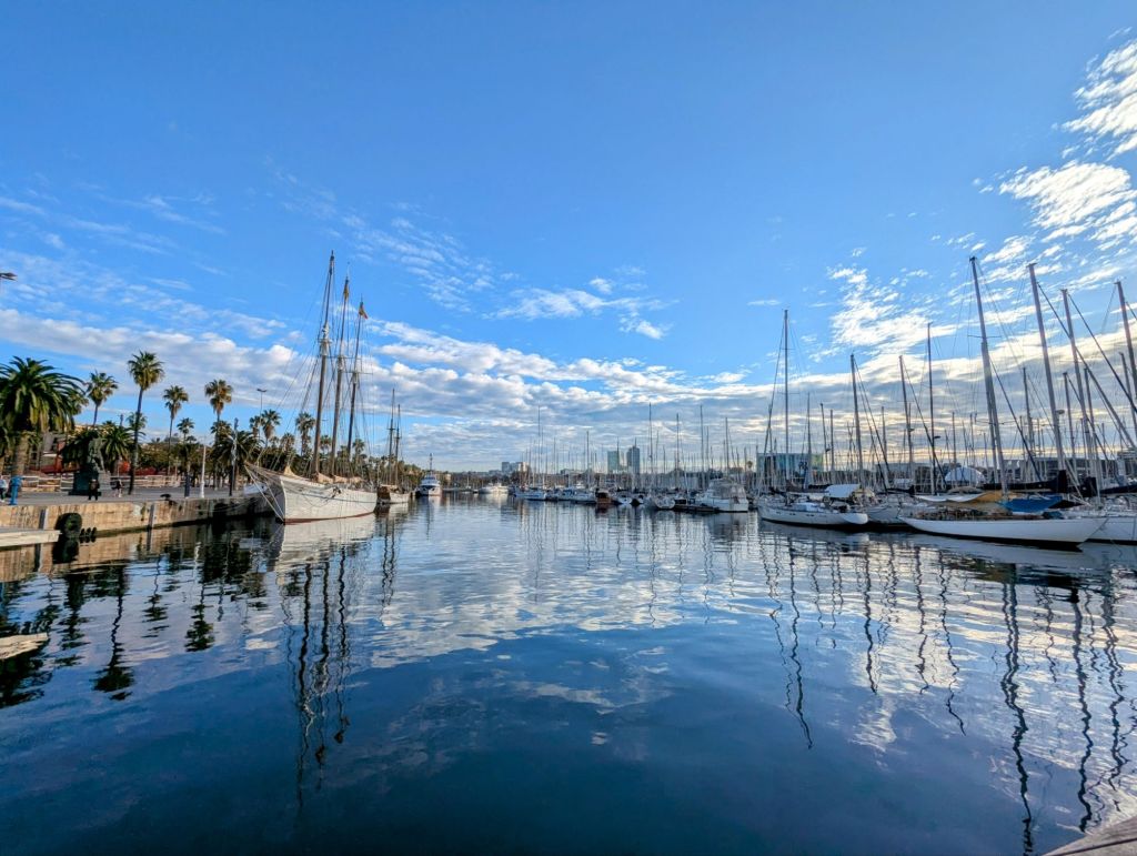 All five of us got a lovely upgrade to club on the flight thanks to Dad. The flight was 1h45 and we arrived just before 3pm local time. We got our bags and went through the airport to find the Metro to take a couple of trains and a bit of a walk to where we were staying in Barcelona near to the Gothic Quarter and not far from the harbour. We all checked into our hotel and then Harry and I went for a wander down by the harbour to check it out. It was lovely and the water so still with some absolutely huge expensive boats on it!