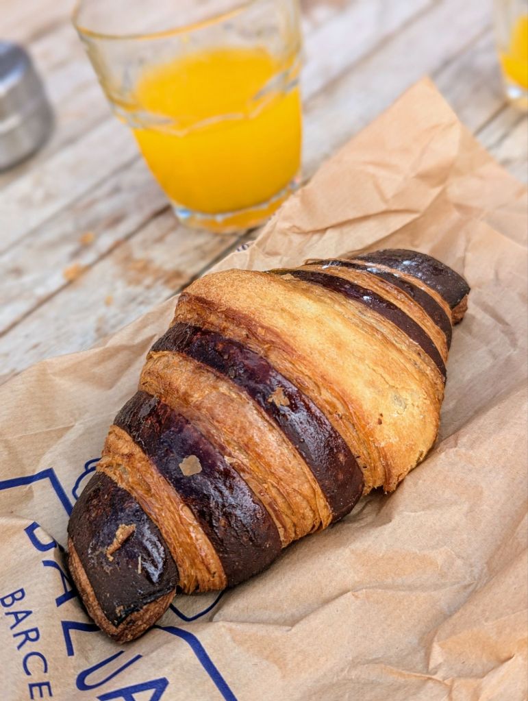 We then showered and changed and met mum, dad and James to walk to a nearby bakery called Balluard Barceloneta for coffees and pastries for breakfast. There was so much choice but chocolate filled croissants or cheese and ham croissants were the most popular choice!